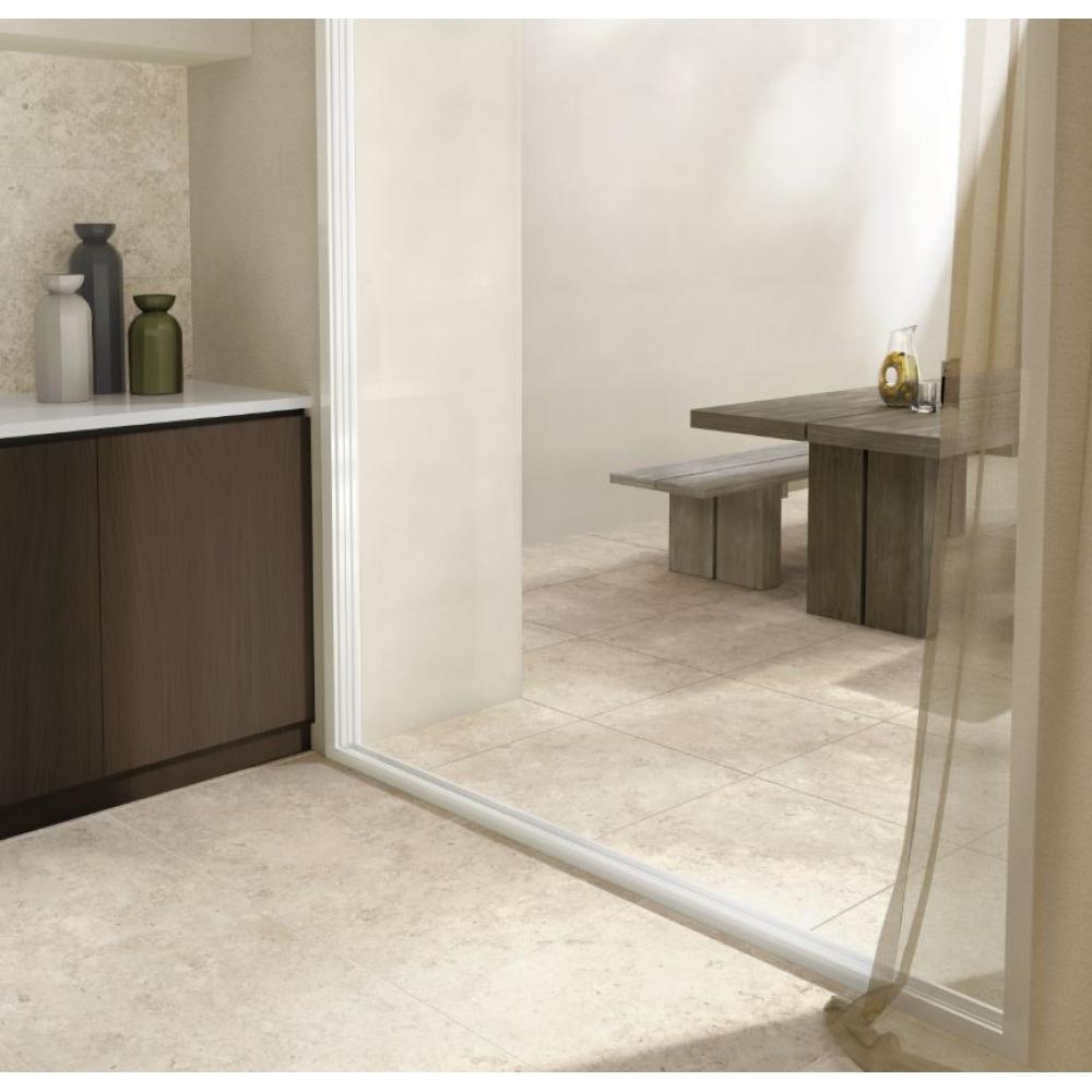 SC Mészkő hatású, fagyálló, élcsiszolt gres burkolat modern enteriőrbe, 30x60 cm /PURE