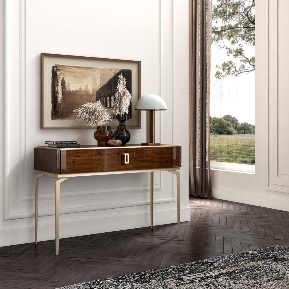 ST Art deco jellegű fiókos konzolasztal, dió színben/ 123x46x82cm