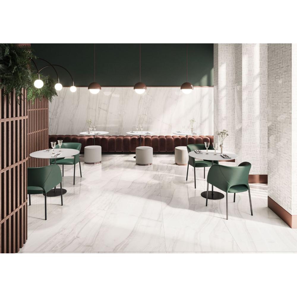 A nagyméretű márványmintás greslapok minden színben elegáns és luxus hatást kölcsönöznek az enteriőrnek. Modern, elegáns enteriőrbe is betervezhető.