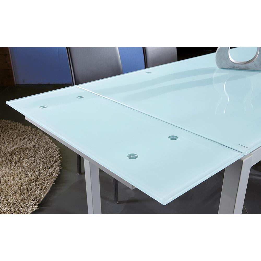 DM Kihúzható lapú modern minimál asztal, fehér üveglappal / 140/200 x 80 x 76 cm