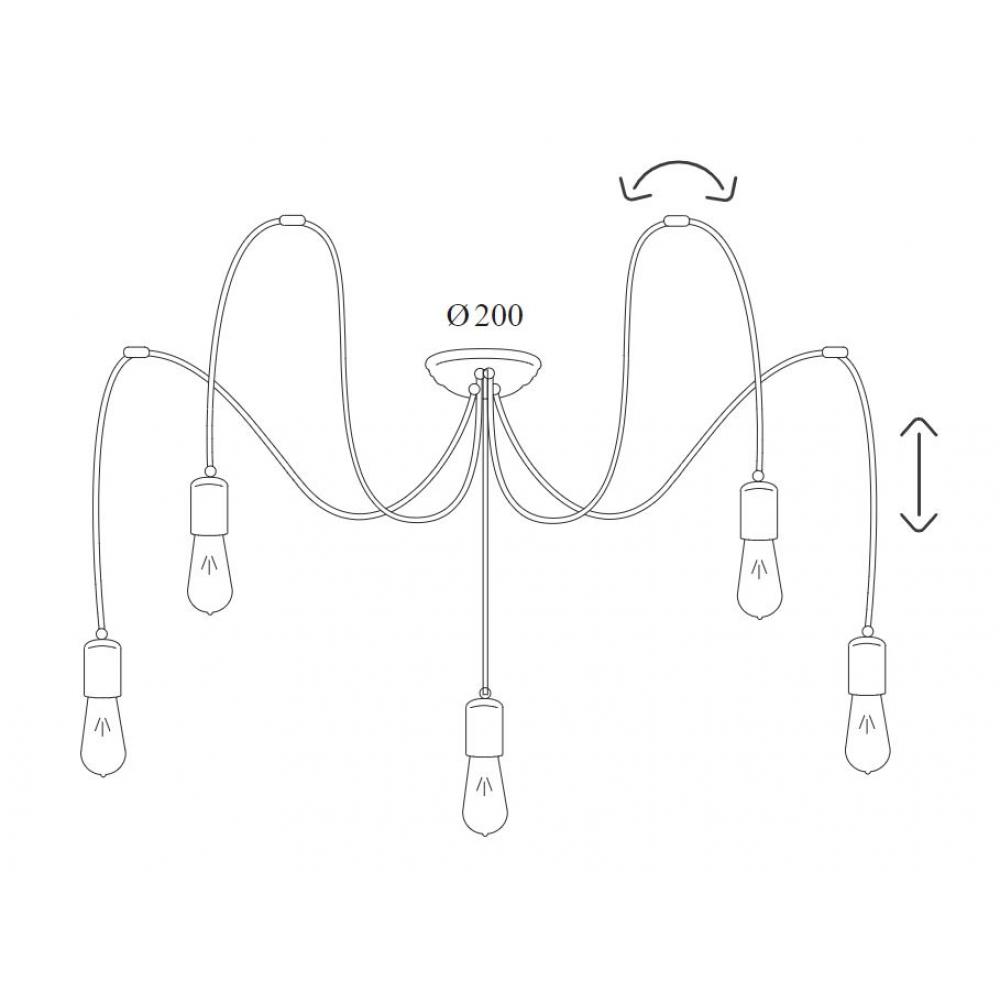 ML Antikolt réz 'póklámpa' mennyezeti lámpa, 5 izzós kivitelben